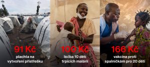 Staňte se našimi dárci – i malý příspěvek má významný dopad a pomáhá měnit životy lidí v krizových situacích. Jen za 100 Kč můžete vyléčit 10 dětí trpících malárií.